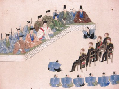 메이지 유신은 30년 동안 일련의 정치 및 경제 개혁이 일본에서 수행된 것을 말합니다. 그 결과, 봉건 영주와 군인 사무라이는 지배적인 영향력을 잃고 황제, 헌법, 의회, 각료 내각, 정규군에게 자리를 내주었습니다.